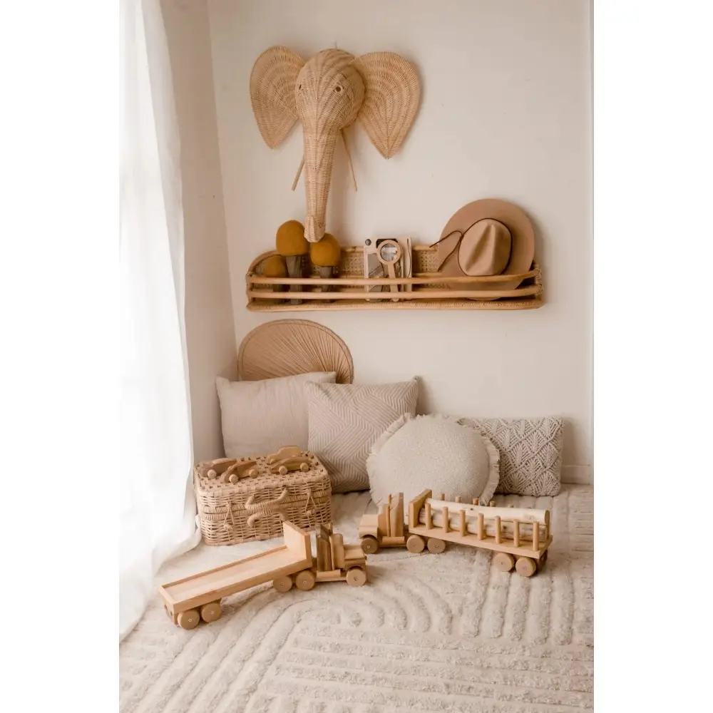 Onze collectie bestaat uit zorgvuldig geselecteerde materialen, natuurlijke tinten en tijdloos design, speelgoed dat niet alleen stimulerend is voor het kind, maar ook een verrijking vormt voor het interieur.